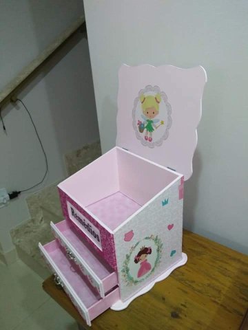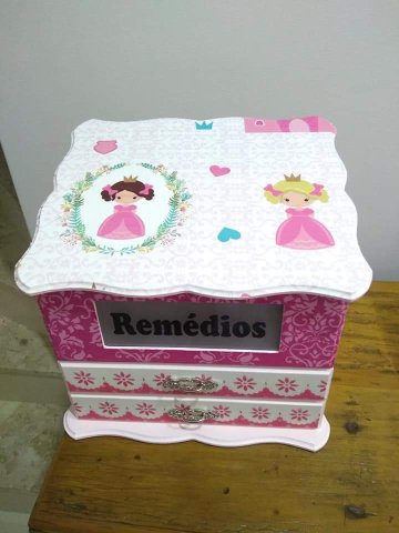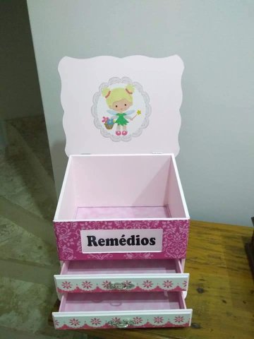Caixa Remedios Rosada 2 gavetas e texto vidro