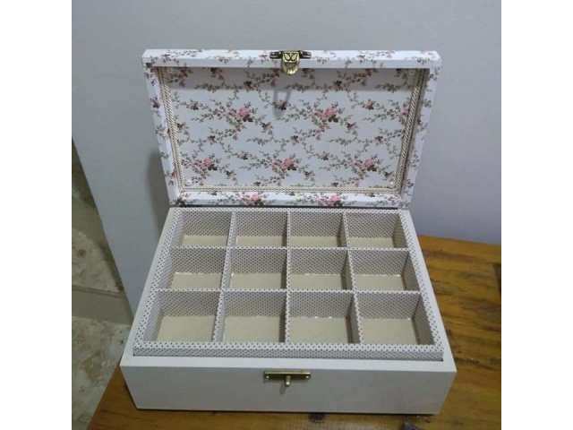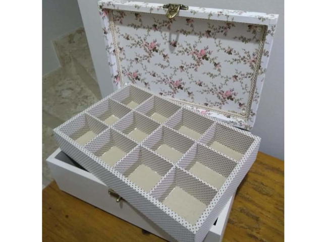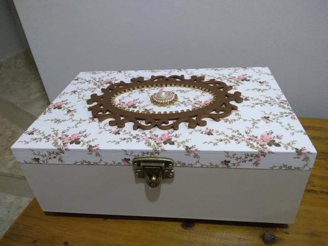 Caixa Media Estampa Branca, Circ Dourado, Fecho