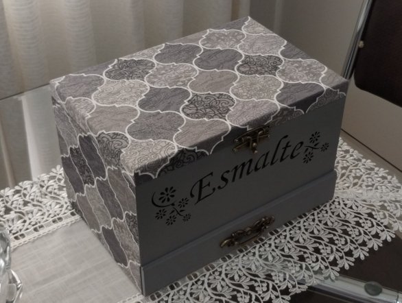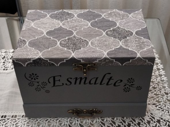 Caixa Esmalte Texto Perfurado