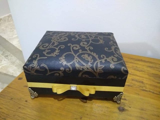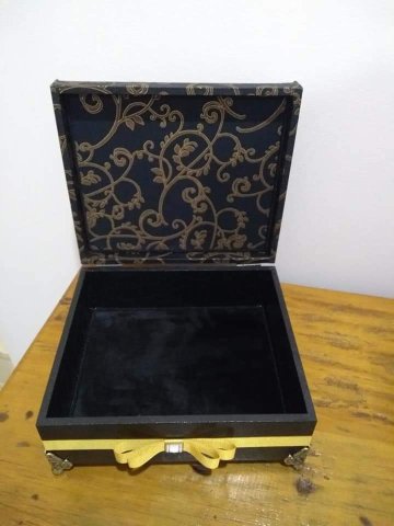 Caixa Sem Divisória Alta Preta/Dourada Pés Laço